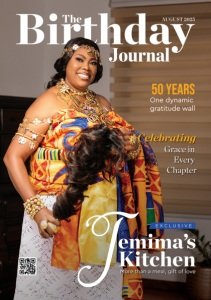 Love Served from Jemima’s Kitchen of Life Mum reflects with pride: “Let’s be honest — if you know Jemima, whom I affectionately call ‘Amonor,’ meaning ‘People’s Mother,’ you’ve probably eaten her food. And not just once or twice. Because Jemima doesn’t just cook. She feeds. She fusses. She freezes. She packs takeaways with love. Her kitchen is her kingdom, and her love language? Definitely jollof, kontomire, and a perfectly spiced light soup. From feeding a whole HR department on a Friday afternoon to cooking and packing meals for her daughter every single school day for years, Jemima has made “Have you eaten?” her signature greeting. At 50, Jemima has stirred, served, and sprinkled love into the lives of many. You don’t just visit Jemima — you leave with a full belly and a heart that feels a little warmer. And that’s what we’re celebrating — a woman whose pots have never run dry and whose love feeds far beyond the table. As her mum lovingly recalls: “From the very beginning, your love language has been food.” As a toddler in the kitchen, you were my quiet shadow. You didn’t ask many questions — you simply watched, absorbing everything like a little sponge. I honestly don’t even know when or how you learned it all, but somehow, you did — and today, you cook even better than I do. I still remember when you were about eight years old and I had to travel to Lomé. What was meant to be a quick trip stretched on for a few days, and I came back home anxious, but you had handled the house like a little woman—cooked, cleaned, fed your brother and the other children. I just laughed and said, “This is Jem’s Restaurant!” That spirit of service has never left you. You still cook with the same love and excellence. Your father’s freezer is always stocked because of you. You send him light soup, kontomire, okro stew, garden egg stew—everything, neatly portioned and labelled. You make sure he has fruits and snacks too. You’ve never once said, “He has a wife.” No. You honour him in this quiet, consistent way—and it humbles me. And you do the same for me. Every time I visit, I go home with bags full of food. You don’t let me leave empty-handed. You just say, “Follow me,” and next thing I know, you're packing and packing. You don’t do it for show—you do it from your heart. I’ve seen you remain generous, even in your lowest seasons. Whether it was after that plane crash or during your cancer treatment, you never stopped giving. You never let your pain turn you inward. You have grace, Jemima. The kind that cannot be taught. I am so proud of the woman you’ve become. You love deeply, you serve quietly, and you always, always feed those around you—with your hands, your heart, and your presence. May God bless you with long life, good health, and joy. May you live to enjoy the full harvest of all the love and labour you have poured into others. And may your pot never run dry. Happy 50th, my precious daughter. I love you deeply. 34 The Birthday Journal